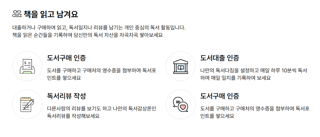 - 첫 독서활동: 첫 인증 시 추가 포인트