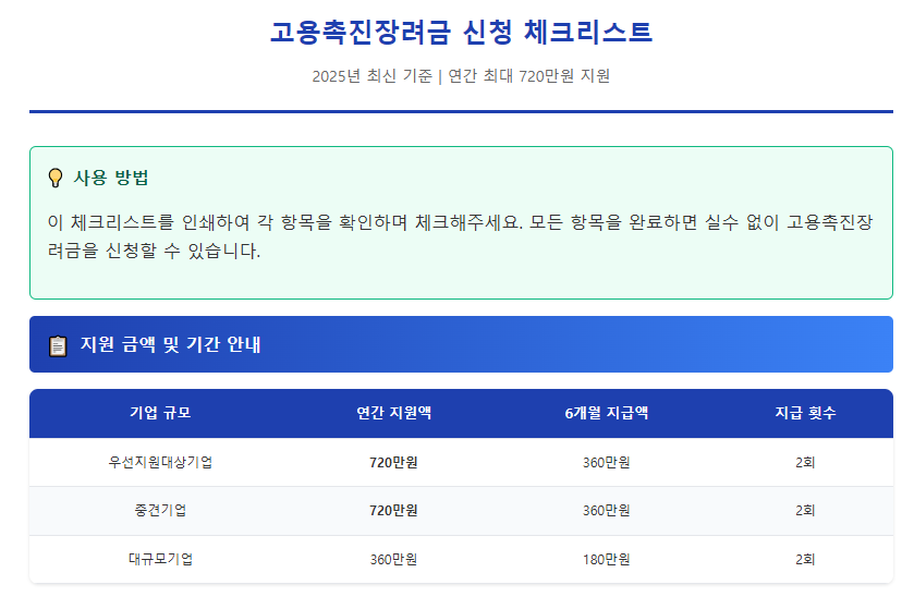 📋 고용촉진장려금 신청 체크리스트