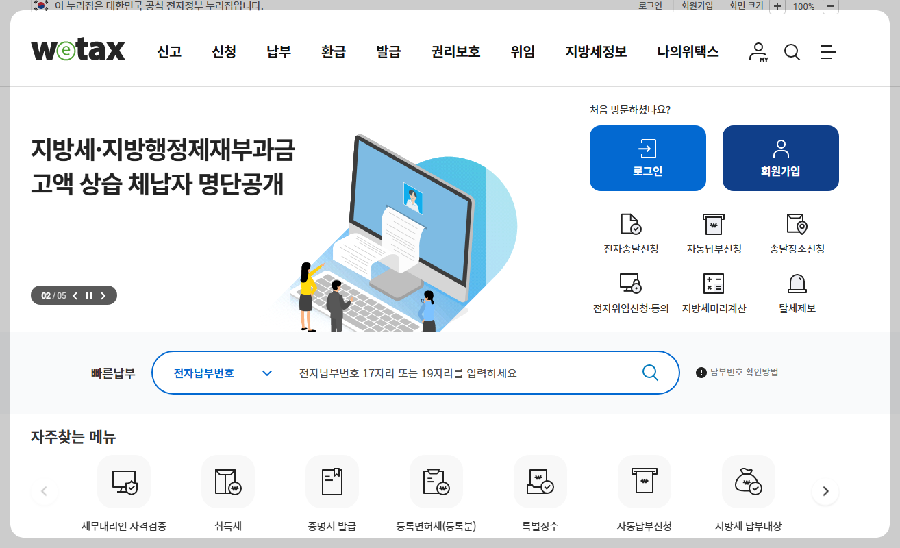 1단계: 위택스 접속 및 로그인