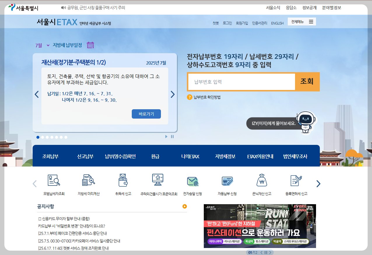 사업장이 서울에 있다면 이택스, 서울 외의 지역은 위택스에서 조회할 수 있습니다.