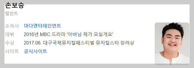 손보승은 2017년 MBC 드라마 '아버님 제가 모실게요'로 배우 데뷔를 했습니다.