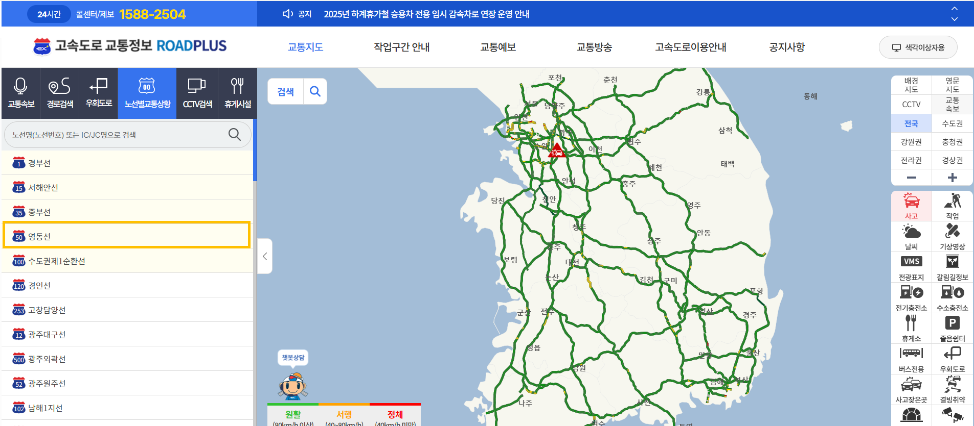 가장 정확한 영동고속도로 교통상황 정보는 공식 운영 기관인 한국도로공사의 서비스를 통해 얻을 수 있습니다.