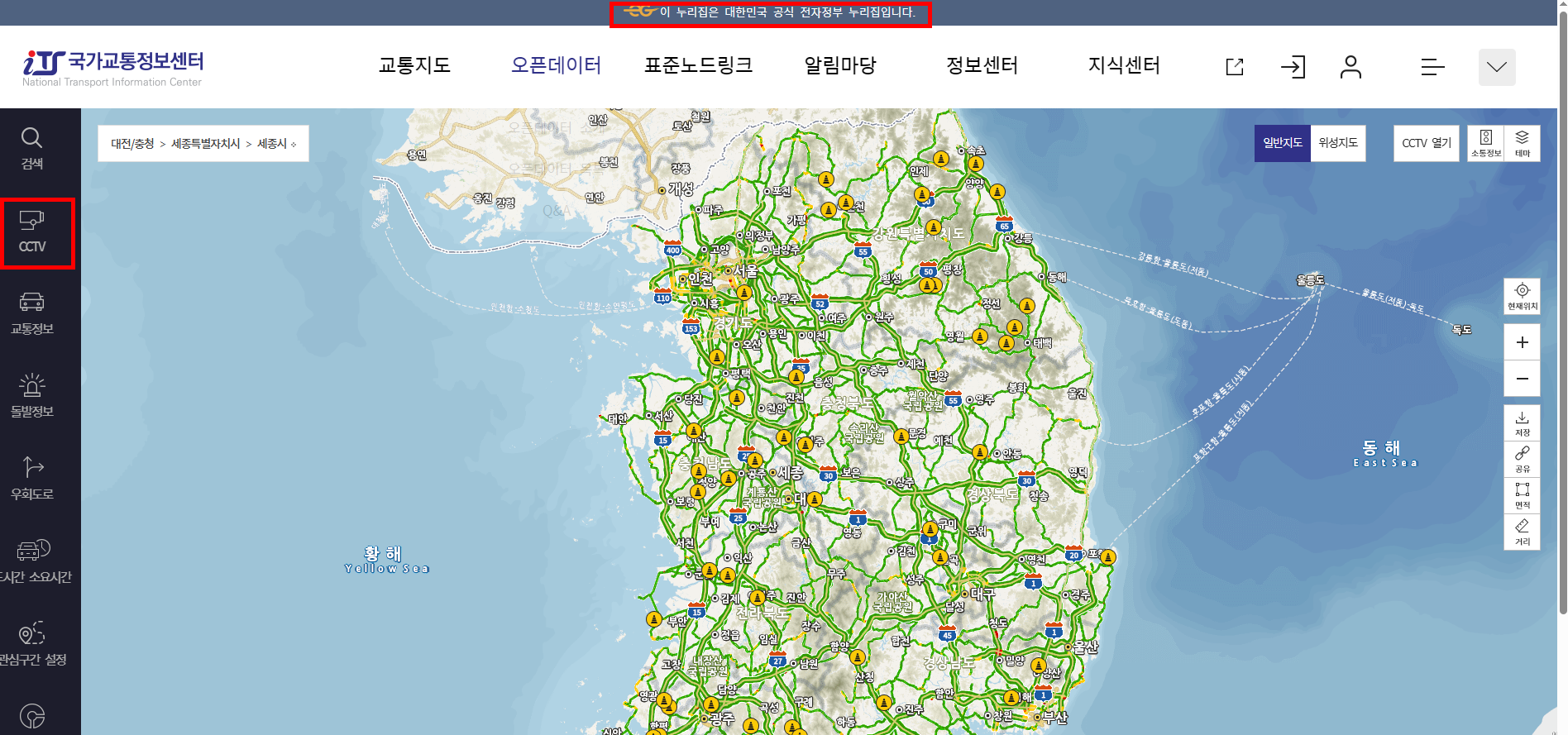 국가에서 운영하고 있는 국가교통정보 센터에서도 가능합니다.