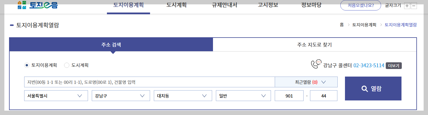 - 토지이용규제정보서비스 접속