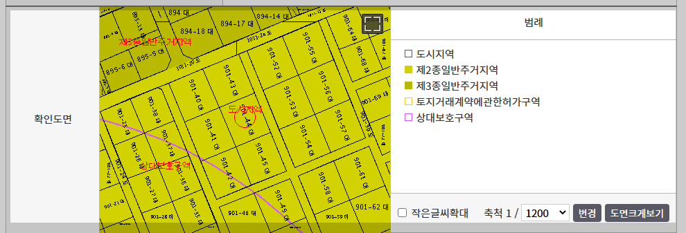 '토지거래허가구역' 항목에서 다음 정보를 확인하세요