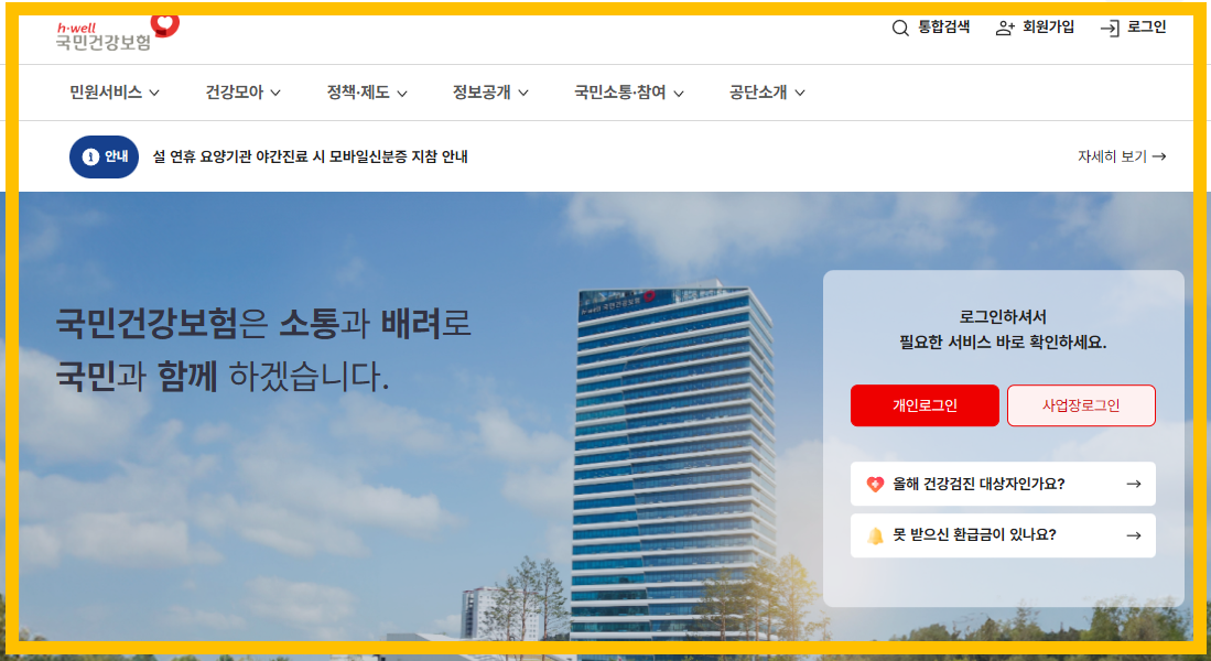 내가 대상자인지 궁금하시죠? 아래 국민건강보험공단 사이트에서 로그인만 하면 10초 만에 확인 가능합니다.